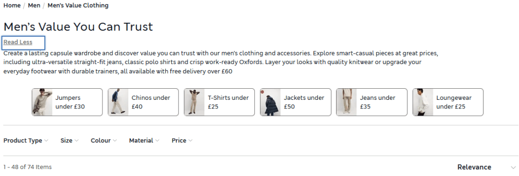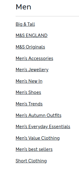 M&S sales data revealed a few links that I could not find within M&S’ primary navigation. I opened up the site map and found a completely different set of links that catered to underserved customer segments. This fact was supported by direct customer feedback in customer surveys and also third party review sites like TrustPilot.