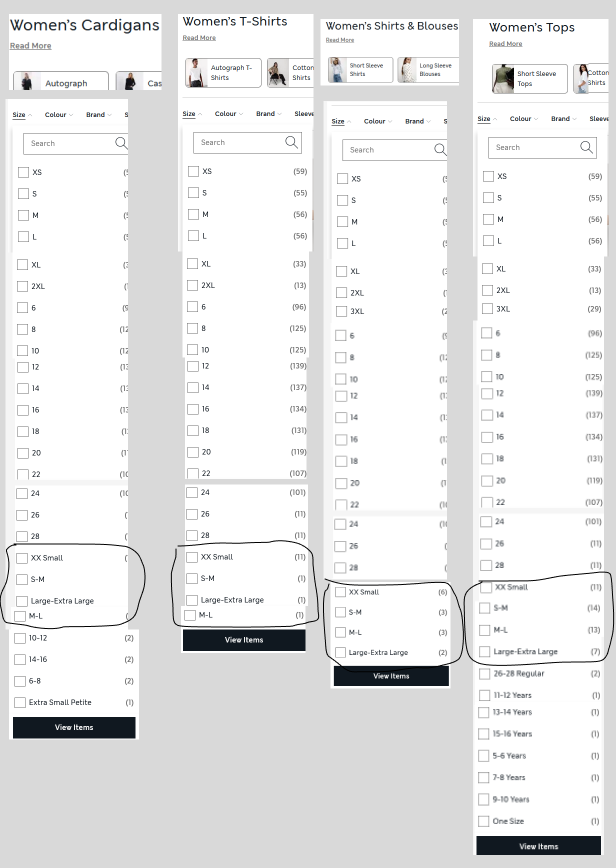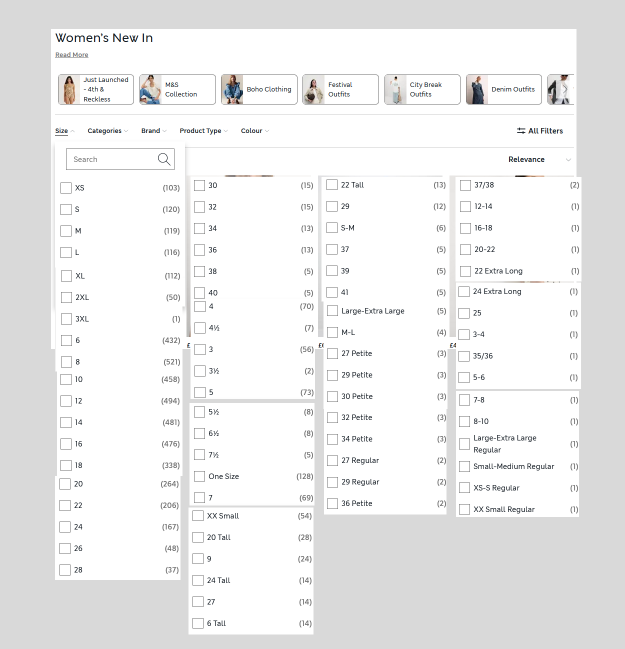 Sizing is poorly organised across M&S’ entire clothing category. This is a major obstacle to conversion that remains unresolved in 2025.
