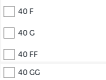 - 42JJ is completely out of sequence (listed after 44J). That size sold comparatively poorly because customers did not anticipate having to scroll down to look for it (appearing 15 positions lower than it should have).