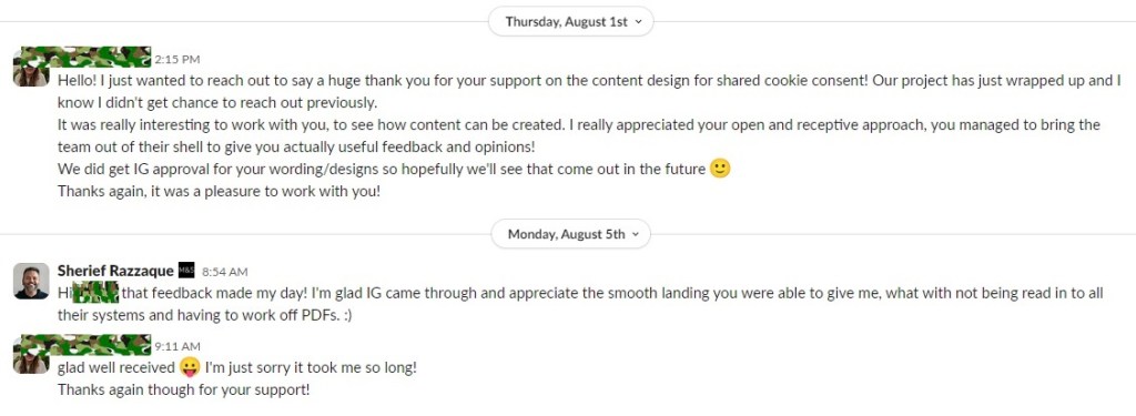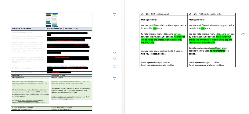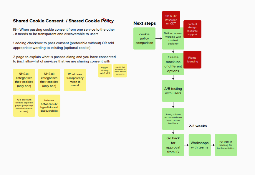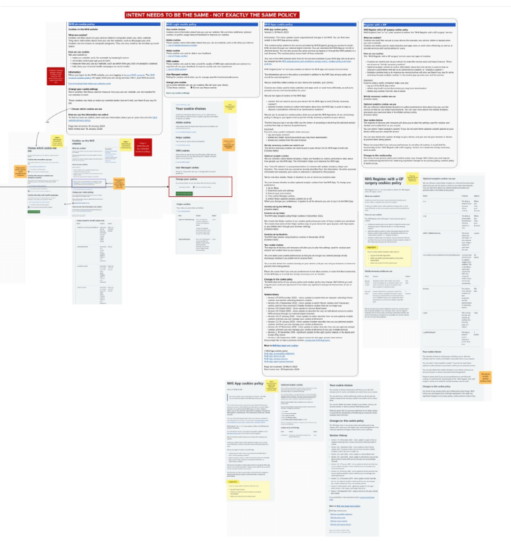 We created a prototype for the cookie banner and accompanying cookie policy and hosted a crit with NHS content designers. It resulted in minor changes but otherwise unanimous approval for both banner and policy recommendations. Both versions would be submitted to the NHS’ information governance (IG) process for ratification.